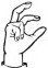 На ћирилици написано АЛЕКСАНДРА КАЗНОВАЦ састоји се из 18 слова [?]. Исписано ћириличном једноручном азбуком за глувонеме: